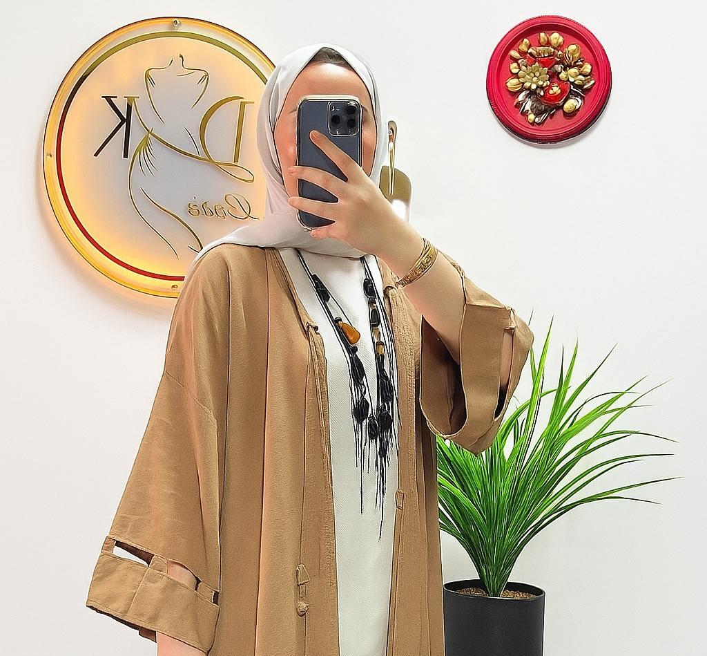 BEYMEN MARKA UZUN KOL NAKIŞLI ELBİSE ORANJ